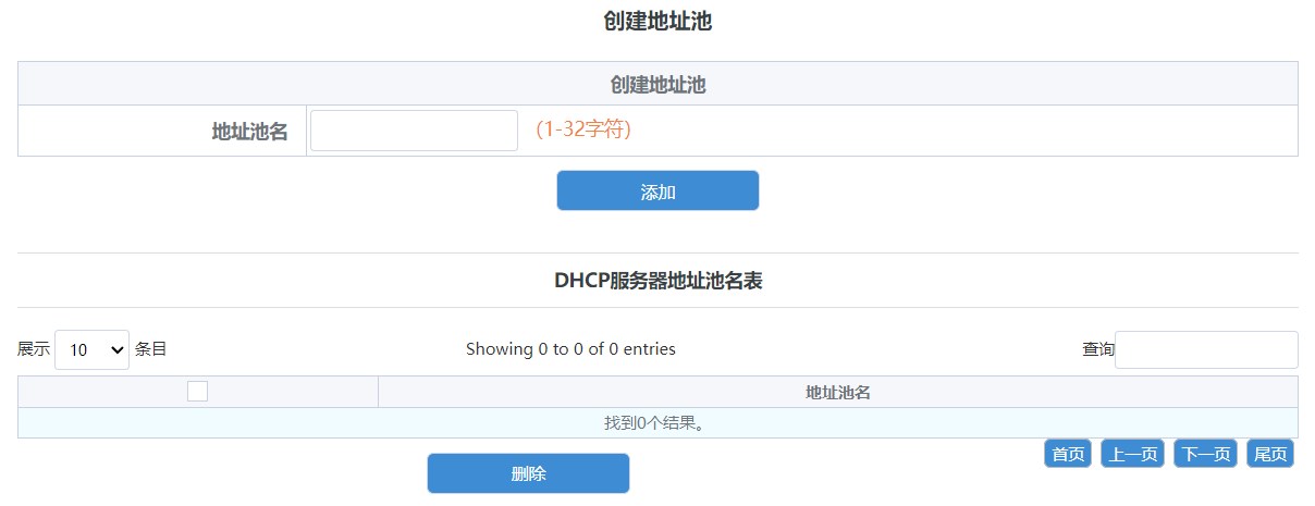 DHCP 服务器地址池名称配置,用户设置地址池名称的添加和删除。