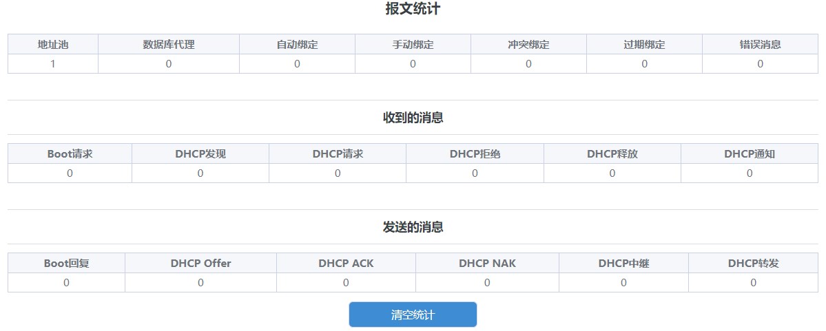 DHCP 服务器数据包统计,用户可以查看 DHCP 数据报文。